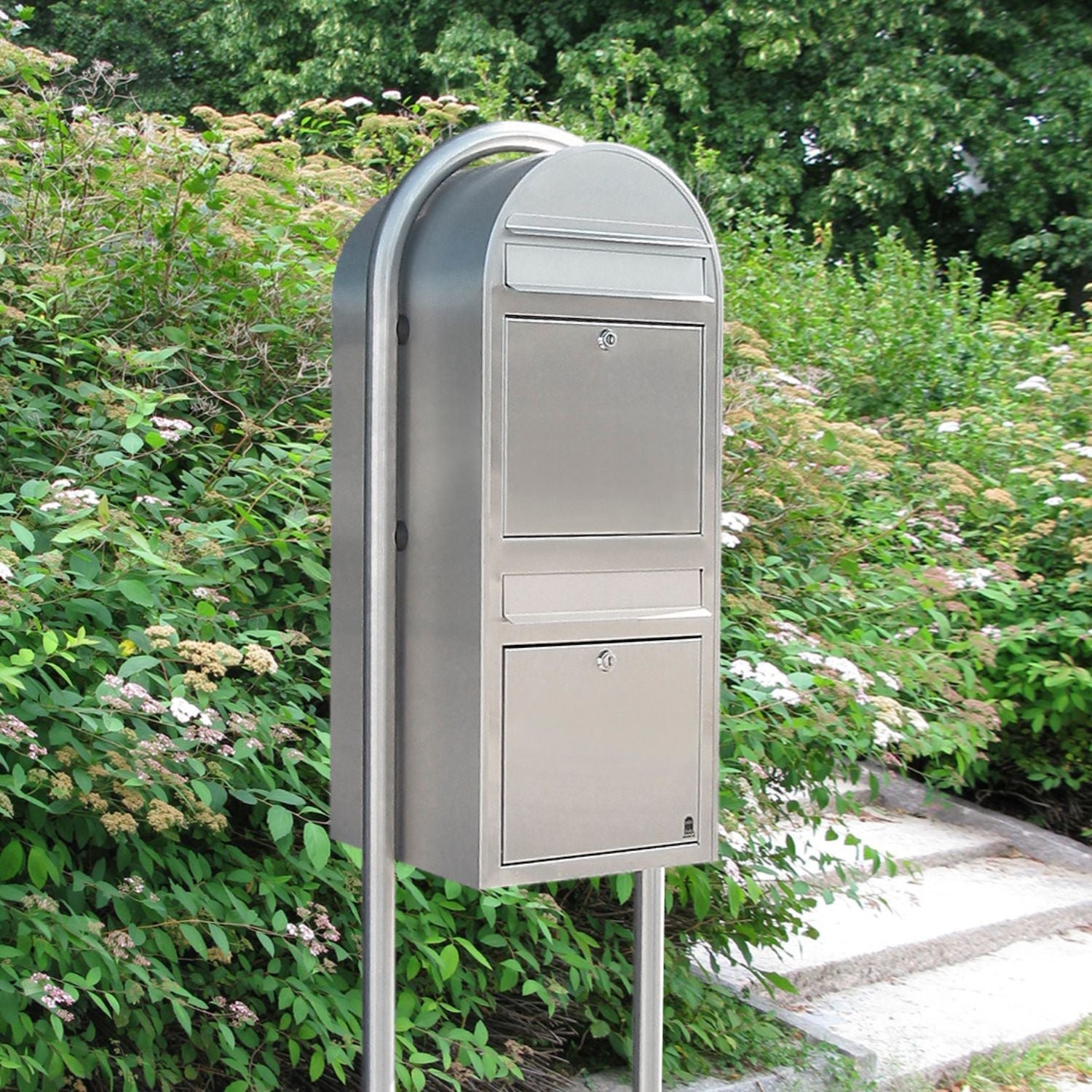 Obwohl sich der Briefkasten Bobi Duo wunderbar mit dem Stativ Bobi Round oder Bobi Link für eine freistehende Aufstellung kombinieren lässt, sind diese Stative nicht im Lieferumfang enthalten. Sie können diese Stative ganz einfach zu Ihrer Bestellung hinzufügen, indem Sie unten auf dieser Seite auf „Intelligente Kombinationen“ klicken.