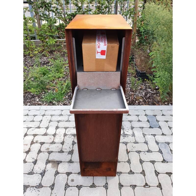 Mit dem Paketbriefkasten GB001 aus Cortenstahl müssen Sie sich nie wieder über verpasste Lieferungen oder beschädigte Pakete ärgern. Sie erhalten eine stilvolle, nachhaltige und äußerst praktische Lösung, die Ihnen viele Jahre lang Freude bereiten wird. Machen Sie Ihre Paketzustellung sorgenfrei und entscheiden Sie sich noch heute für Pakun.