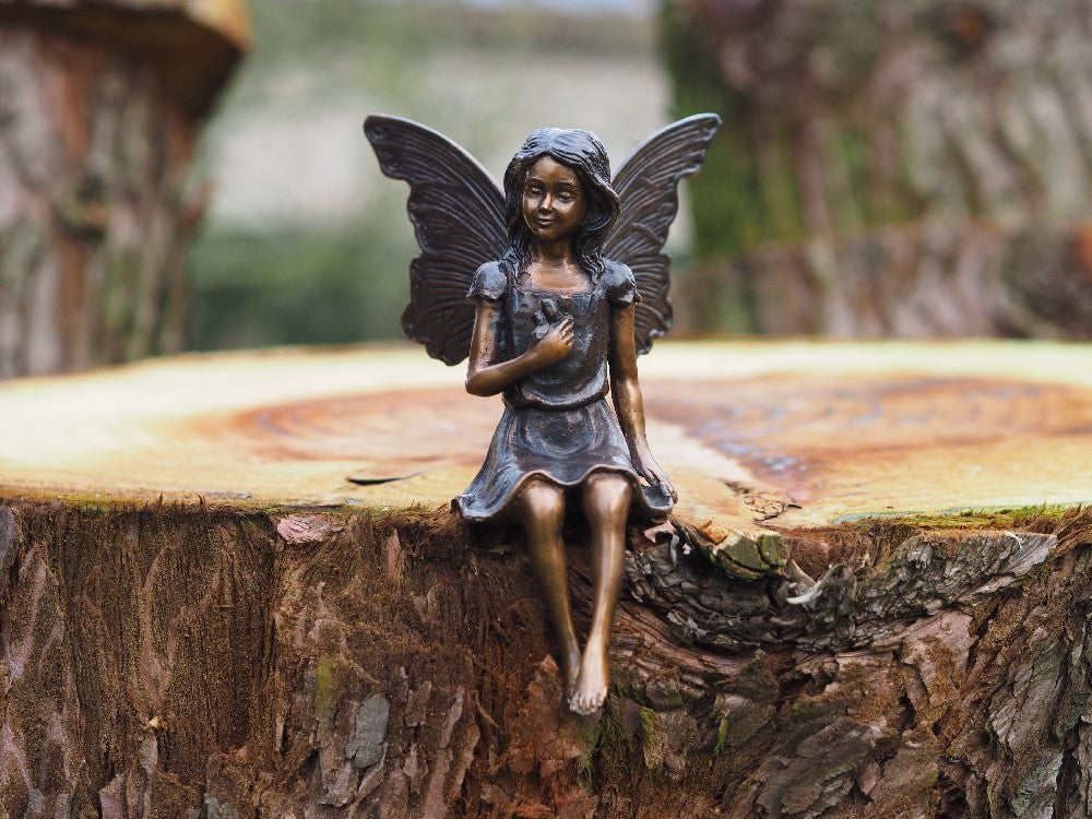 Mit der Bronzestatue „Sitzende Fee mit Blume“ erwerben Sie nicht nur eine wunderschöne Ergänzung für Ihre Sammlung, sondern auch ein Stück Ewigkeit, das über Generationen hinweg erstrahlen wird.