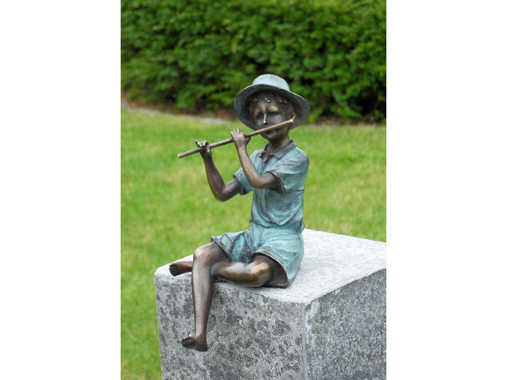 Bronzestatue Junge mit Flöte 20x10x12cm