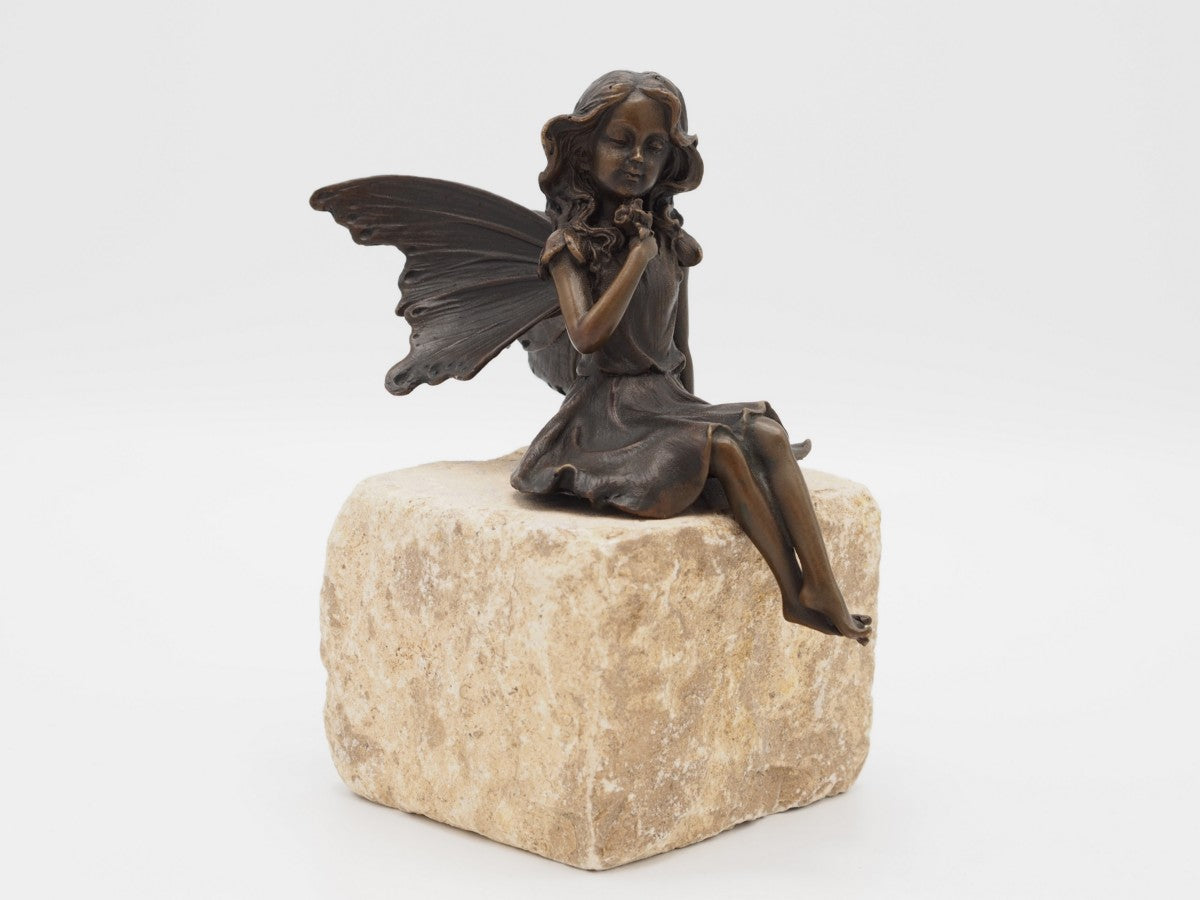 Bronzestatue eines sitzenden Elfen, 15 x 8 x 13 cm