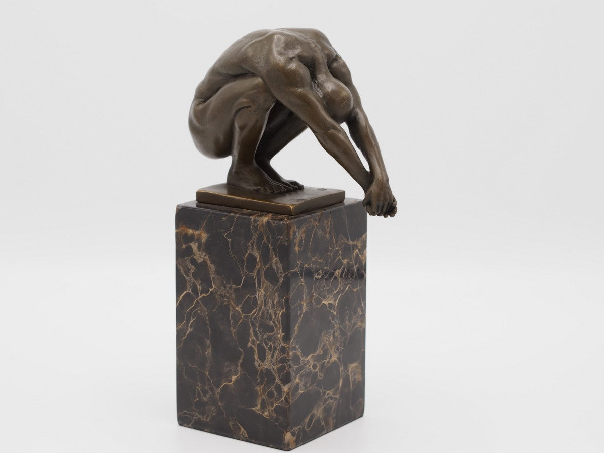 Bronzestatue eines Tauchers auf Marmorsockel, 24 x 8 x 13 cm