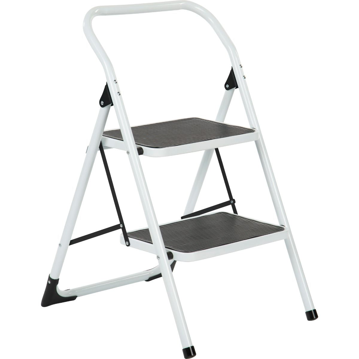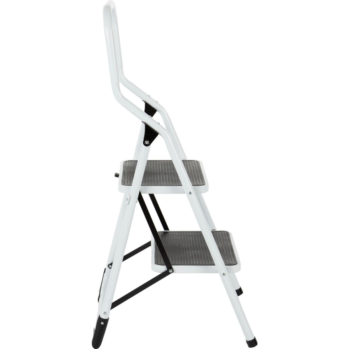 Die Leiter ist aus robustem Stahl gefertigt und mit einer weißen Beschichtung versehen, wodurch sie nicht nur langlebig ist, sondern auch ein gepflegtes Aussehen hat. Dank ihrer kompakten Abmessungen lässt sie sich nach Gebrauch leicht verstauen.