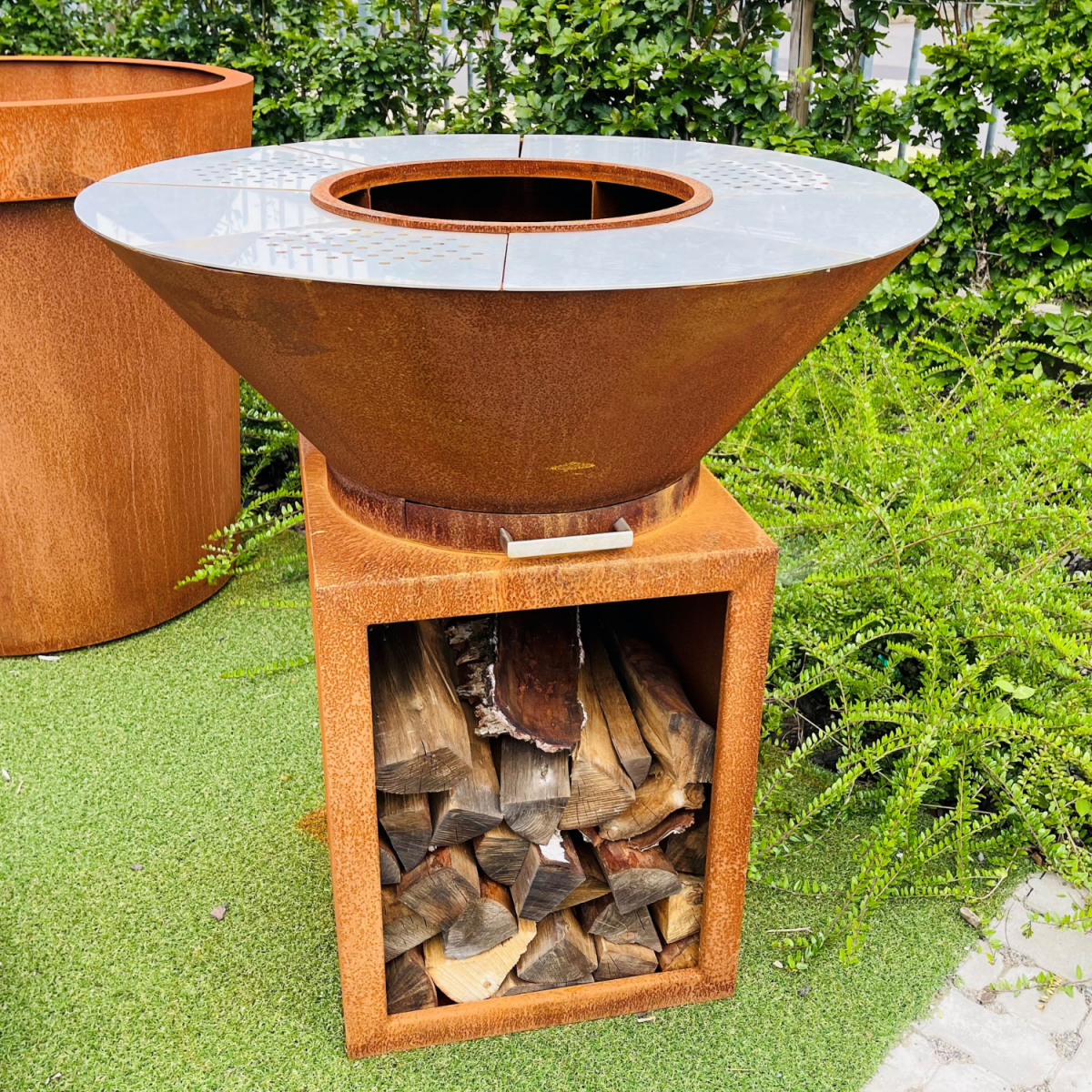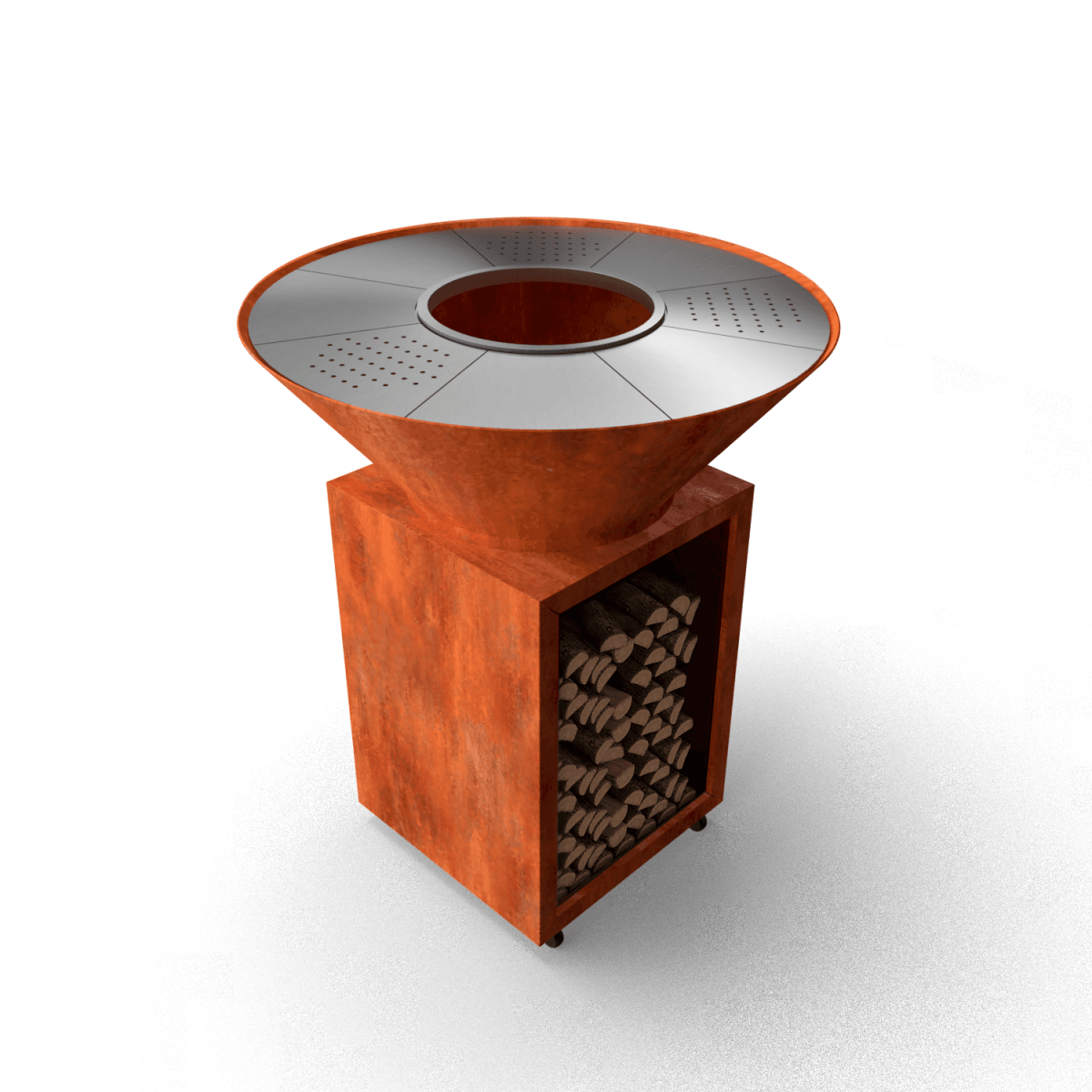 Der Cook N Fire Coni besteht aus drei Teilen: einem Holzlager, einer Feuertonne und einer Grillplatte. Durch diesen modularen Aufbau lässt sich die Feuerschale leicht bewegen und an Ihre Bedürfnisse anpassen. Ganz gleich, ob Sie einen gemütlichen Abend im eigenen Garten veranstalten oder die Feuerschale an einen besonderen Ort mitnehmen möchten, der Cook N Fire Coni bietet Ihnen die nötige Flexibilität. Dank des langlebigen Cortenstahls kann die Feuerschale unabhängig von den Wetterbedingungen das ganze Jahr über draußen bleiben.