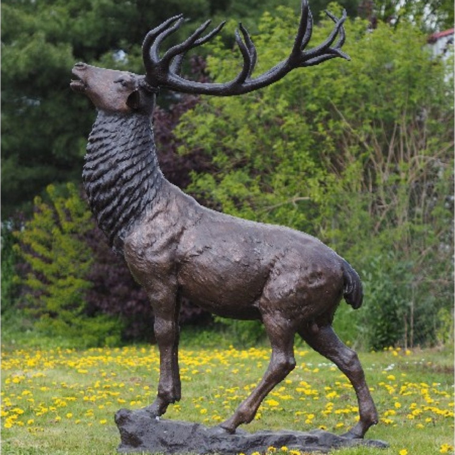 Die Bronzestatue Giant Deer 255x70x150cm (HxBxL) zeichnet sich durch ihre lebendige Patina aus, die durch einen sorgfältigen chemischen Prozess entsteht, der die natürliche Gelb- oder Kupferfarbe der Bronze in kräftige Farbtöne wie tiefes Braun, Grün oder Schwarz umwandelt. Dies verleiht jedem Bild ein einzigartiges Aussehen und sorgt dafür, dass es in jeder Umgebung Aufmerksamkeit erregt. Ob drinnen oder draußen platziert, es bleibt ein markantes Kunstwerk.