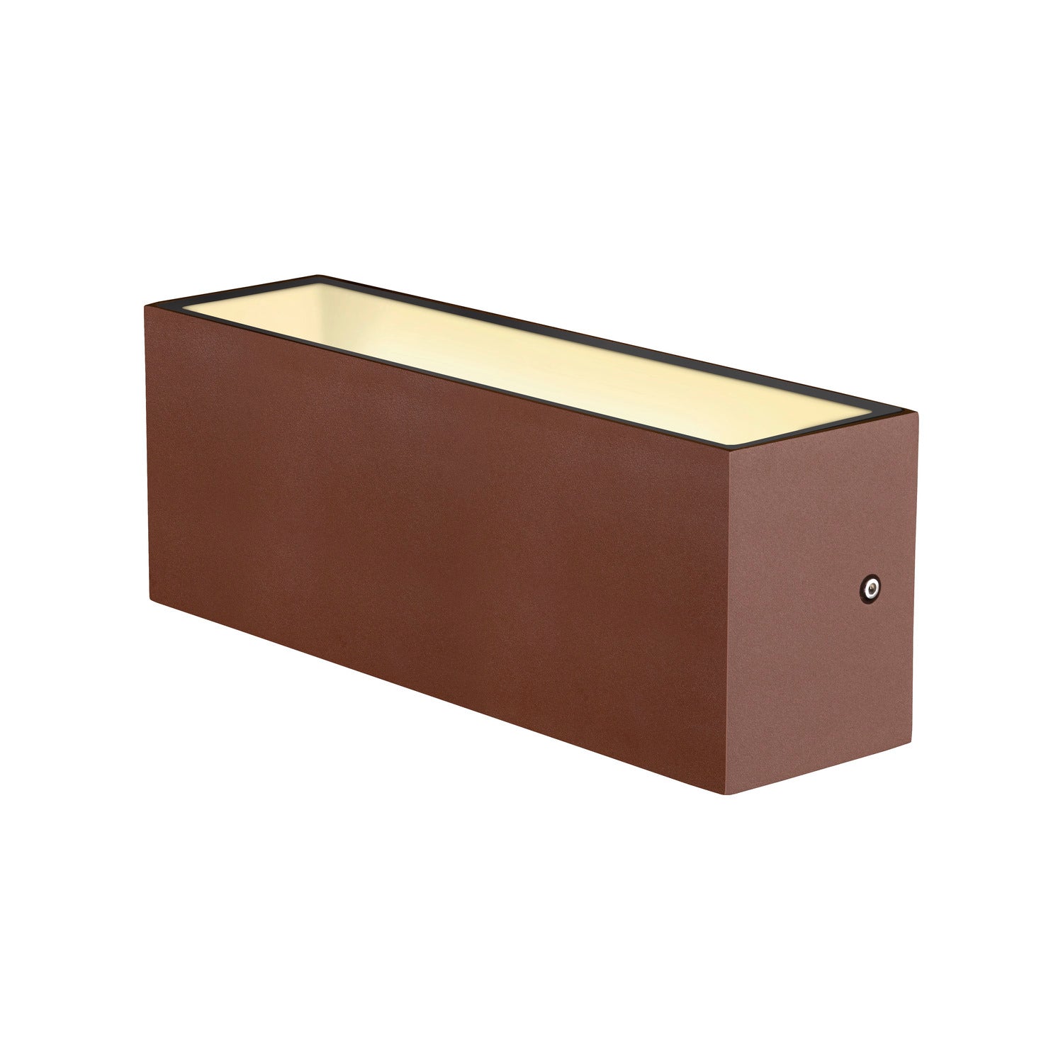 Die klassisch-moderne Leuchtenfamilie SLV SITRA sorgt für variables Licht für jeden Außenbereich. Die rostfarbene Wandleuchte SITRA CUBE L UP/DOWN passt perfekt zu verschiedenen Architekturstilen und schafft eine spannende indirekte Lichtatmosphäre. Hergestellt aus robustem Aluminium und mit der Schutzklasse IP65 ist diese Leuchte langlebig und beständig gegen alle Wetterbedingungen. Die eingebaute LED-Beleuchtung leistet 24 Watt, 2800 Lumen und bietet über den CCT-Schalter eine flexible Lichtfarbe (3000K/4000K). Durch die einfache Installation an 230 V ist dies eine vielseitige und zeitsparende Lösung für eine stimmungsvolle Außenbeleuchtung.